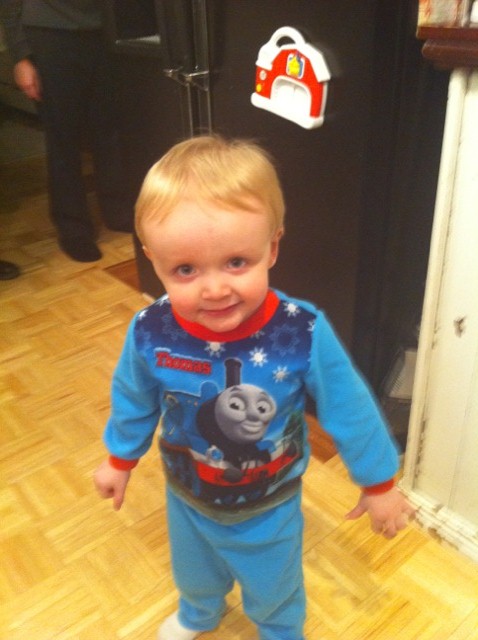 Step 7: Get a little monster in the kitchen. A very, very rambunctious monster. I asked him to stop running around and smile for me. This is what I got:
